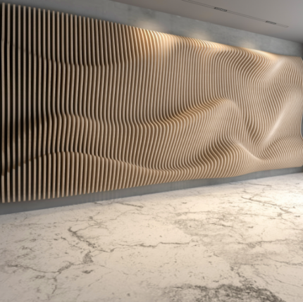 Modern CNC Carved Wood Panel Parametric Wall Art Wood Hanging Decoration Large Engraved Japanese Wall Art Wooden Decor for Home